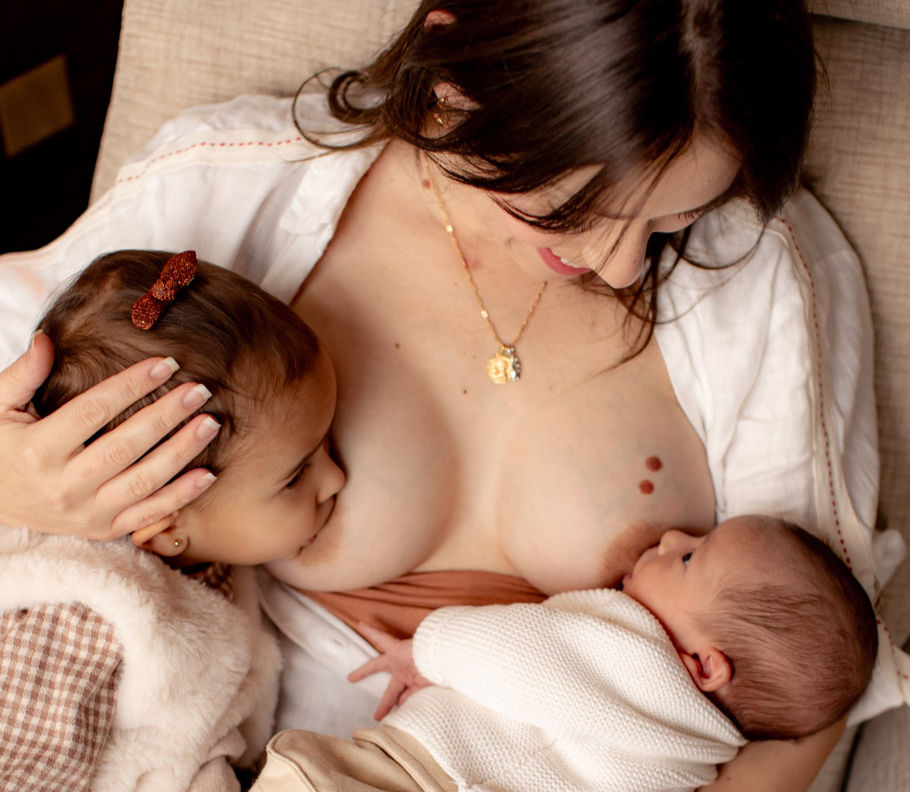 Vous pouvez choisir de donner les deux seins en même temps, ou d’allaiter votre nouveau-né en priorité (notamment pendant les premiers jours de vie ce celui-ci pour qu’il reçoive bien le colostrum). Parfois, l’aîné souhaite téter plus souvent, stimulé par l’abondance de lait. Parfois, il se désintéresse peu à peu de la tétée. Chaque situation est différente, et vos besoins comptent tout autant que ceux de vos enfants.