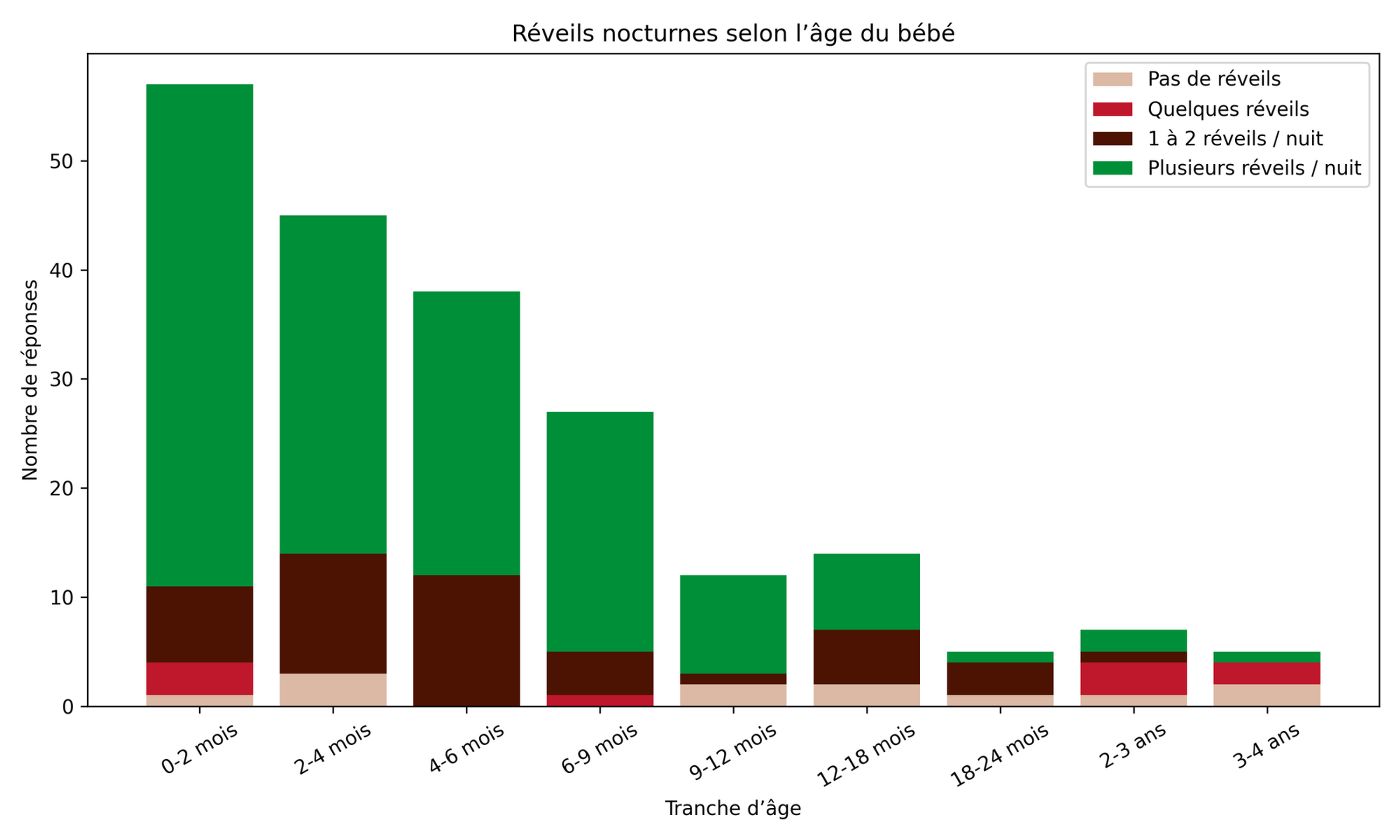 Merci de participer à ce petit sondage entre parents ! L’objectif est de montrer la réalité des réveils nocturnes des bébés selon leur tranche d’âge ✨