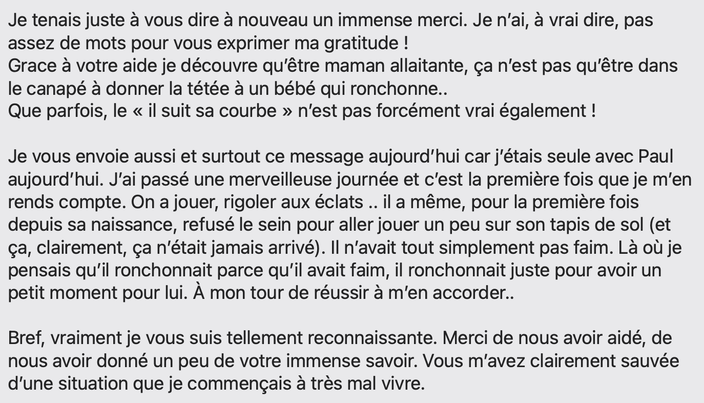 Dans ces situations, il est vivement recommandé de vous appuyer sur les stratégies d'une consultante en lactation IBCLC. Souvent, de simples ajustements permettent de relancer la croissance et améliorer significativement l’apport en lait.