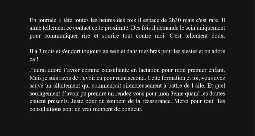 Être honnête sur ses compétences réelles, c’est une se montrer respectueuse, vis-à-vis des mères qui nous font confiance, vis-à-vis des bébés qu’elles allaitent et vis-à-vis de celles qui se forment pendant des années pour garantir un soin fondé sur les études scientifiques, la rigueur et l’éthique.