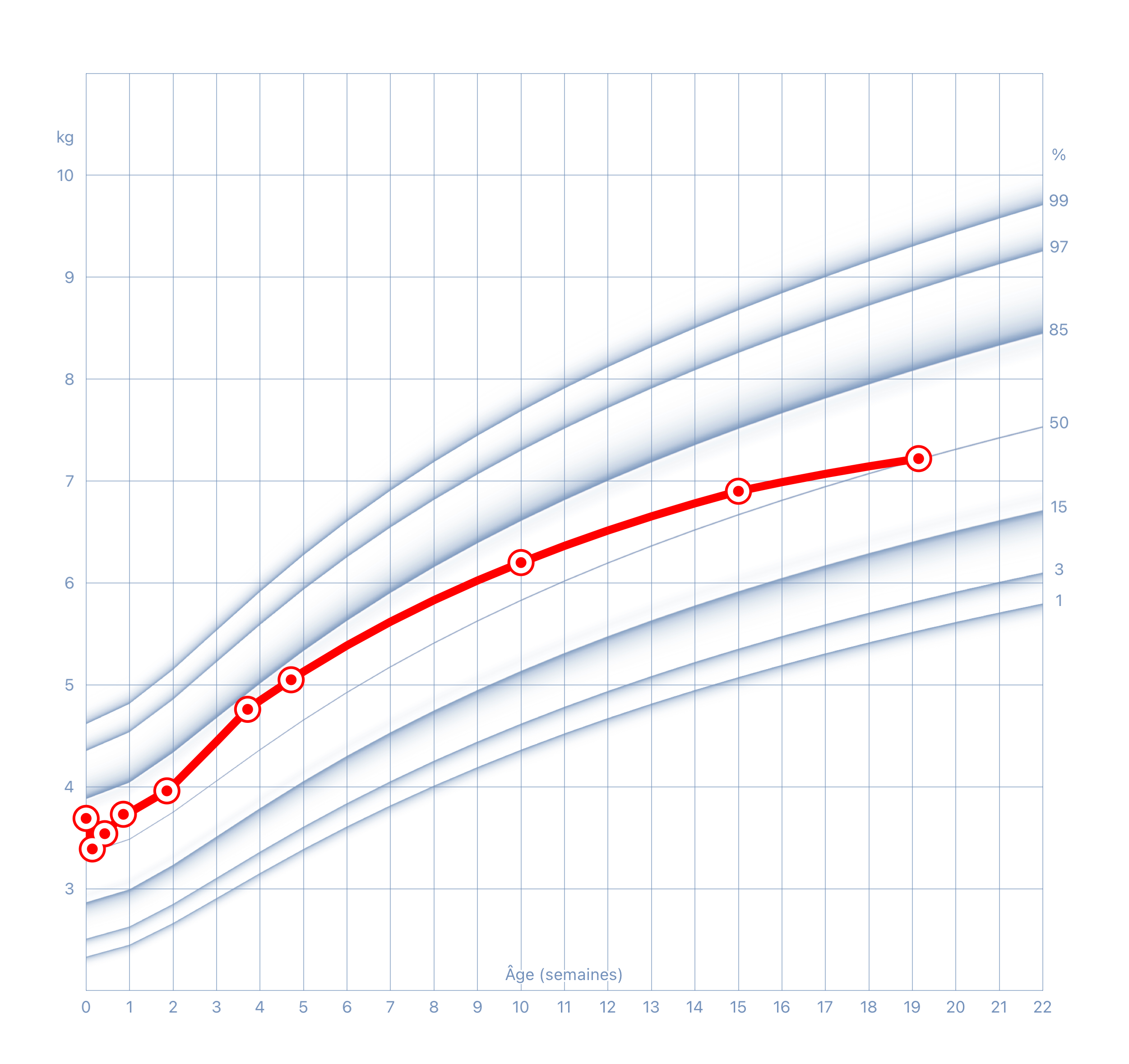 Ce que signifient les percentiles sur une courbe de poids